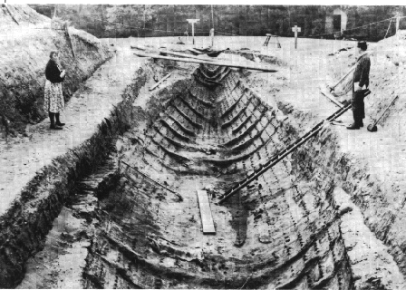 - see the sarcophagus of the female burial at St. Denis (believed to be of Queen Ardegunde) and some of the associated artifacts; see also the burial mounds and ship burial at Sutton Hoo with associated artifacts (helmet, belt buckle, shoulder clasps, scepter, spoons, and coins)